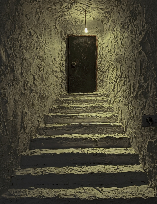 tout au bout des escaliers (2025) - all the way up the stairs bois, carton, matériaux divers - wood, cardboard, mixed media 38 x 24 x 16 cm -