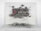 1947 - II (2026) concrete, steel, wood 47 x 62 x 20 - (flag 15 x 30) I would hang it directly on a wall and let the concrete dust stay on the floor - first version of 1947