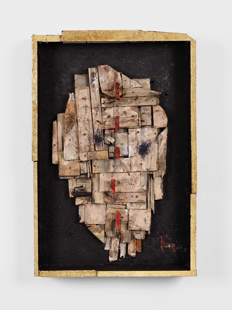 wood, mixed media, gold-leaf frame