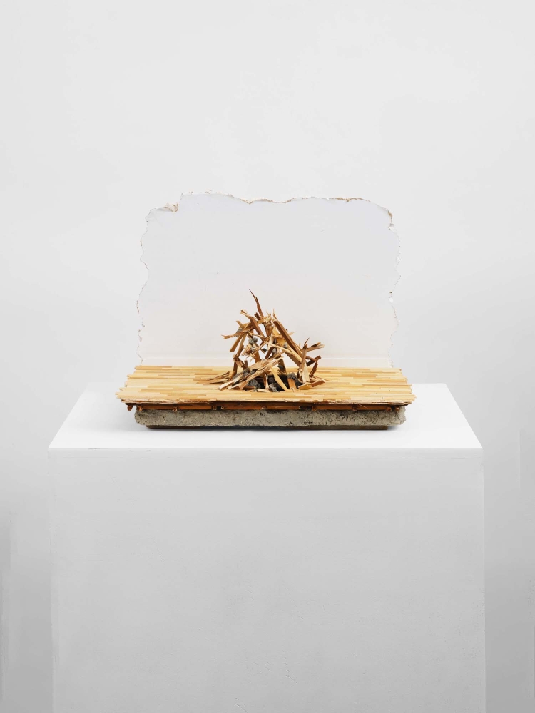 wood, concrete, mixed media